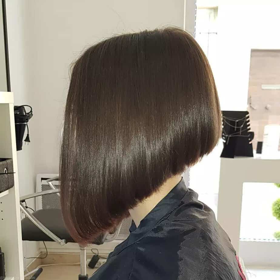 For a distinctive and edgy style, consider a bold brown angled bob. The strong color paired with the sharp angles creates a striking appearance that’s sure to turn heads. This look is ideal for those wanting a stylish haircut with a modern twist.