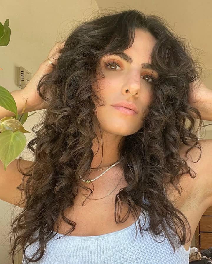24. Curly Hair with Curtain Bangs for a Bold and Textured Style